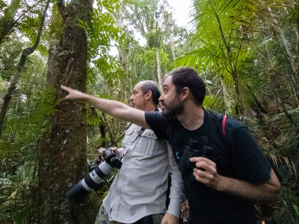 The best time to observe primates in the Atlantic Forest is during the dry season, between April and September. This is ideal because the trails are drier and the animals move less during this time of year. We are guaranteed to see and take good photos of three species: the Black-lion tamarin (Leontopithecus chrysopygus), the Southern Muriqui (Brachyteles arachnoides) and the Black-fronted titi monkey (Callicebus nigrifrons). The Buffy-tufted marmoset (Callithrix aurita) responds well to playback, but we don’t always get good photos as they are very suspicious. The rarest species is the Black-faced lion tamarin (Leontopithecus caissara), so it’s best to spend at least three days looking for this species. This is the only species we can’t 100% guarantee we’ll find. I’ve been carrying out expeditions in the area for a long time and in recent times our nohall in relation to the animal has improved a lot, and in the last three expeditions we’ve been successful and found the species.