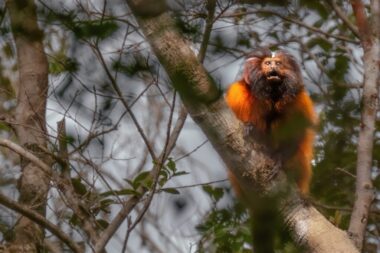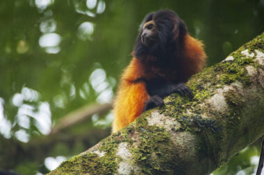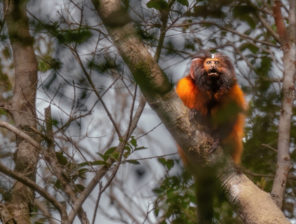 The Caissara lion tamarin (Leontopithecus caissara) is one of the rarest and most endangered primates on the planet, with an estimated population of no more than 500 in the wild. We can’t 100% guarantee an encounter with the species, but the area near our lodge is home to a flock and our chances of meeting them are high. I’ve been carrying out expeditions in the area for a long time and in recent times, our approach to the animal has improved a lot, and on the last two expeditions we’ve been successful and found the species.