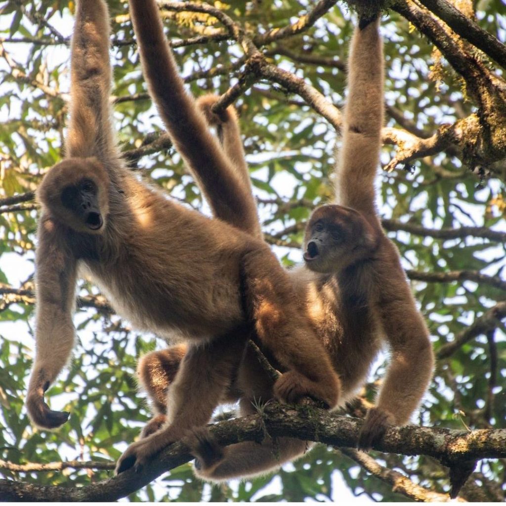 Our guides monitor the families of Muriquis days before our tour, which guarantees our encounter with the largest primates in the Americas. During the tour, we can watch the Muriquis families awaken in the forest and witness the behavior of these peaceful primates in the wild, which is undoubtedly a unique and exciting experience. We remain under observation for a maximum of 3 hours, taking care not to stress the animals, even though they are groups of Muriquis who are used to human presence. It is very common during the trip to come across other primates, such as the Howler monkey and the Capuchin monkey.