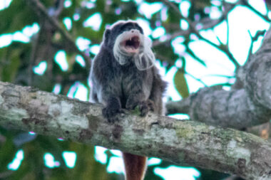Nossa viagem começa na cidade de Cruzeiro do Sul e nosso ponto de encontro é no Aeroporto Internacional de Cruzeiro de Sul. De lá seguimos para a Pousada da Janaína, onde ficaremos hospedados. Teremos uma tarde e um dia inteiro para explorar a região do Rio Croa em busca de imagens do sagui-imperador (Saguinus imperator subgrisescens) e do sagui-de-cara-branca (Saguinus melanoleucus), duas espécies icônicas de primatas que ocorrem apenas na margem esquerda do Rio Juruá. Elas não ocorrem no Parque Nacional da Serra do Divisor. Por isso, dedicamos um dia e meio da nossa viagem a Cruzeiro do Sul para fotografar essas duas espécies.
