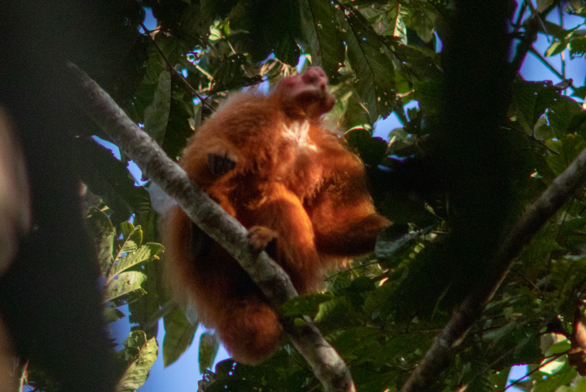 Nossa viagem começa na cidade de Cruzeiro do Sul e nosso ponto de encontro é no Aeroporto Internacional de Cruzeiro de Sul. De lá seguimos para a Pousada da Janaína, onde ficaremos hospedados. Teremos uma tarde e um dia inteiro para explorar a região do Rio Croa em busca de imagens do sagui-imperador (Saguinus imperator subgrisescens) e do sagui-de-cara-branca (Saguinus melanoleucus), duas espécies icônicas de primatas que ocorrem apenas na margem esquerda do Rio Juruá. Elas não ocorrem no Parque Nacional da Serra do Divisor. Por isso, dedicamos um dia e meio da nossa viagem a Cruzeiro do Sul para fotografar essas duas espécies.