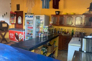 El bar ofrece bebidas, cervezas y caipirinhas.